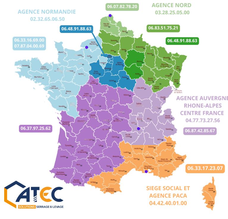 ATEC Serrage & Levage accompagne les industriels partout en France grâce à un réseau d’agences régionales.
